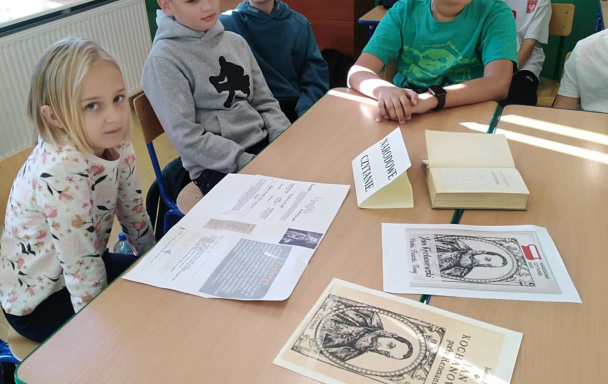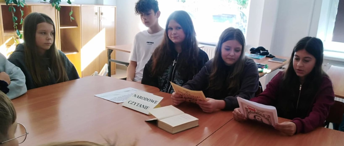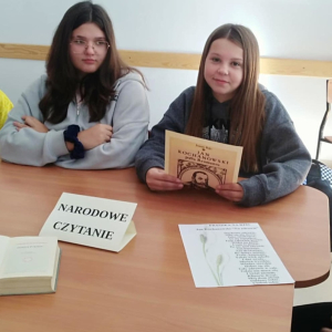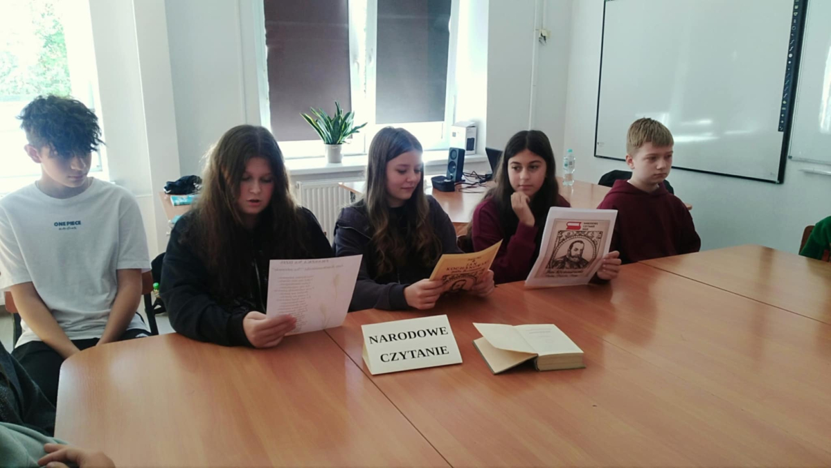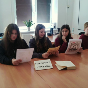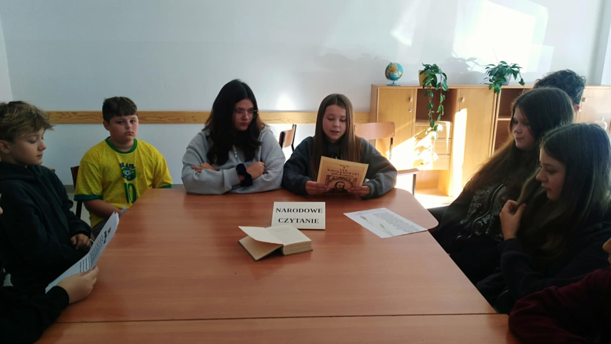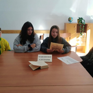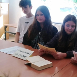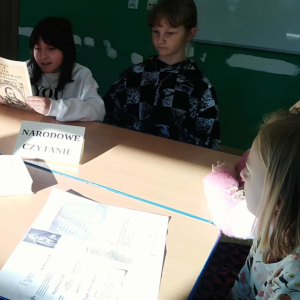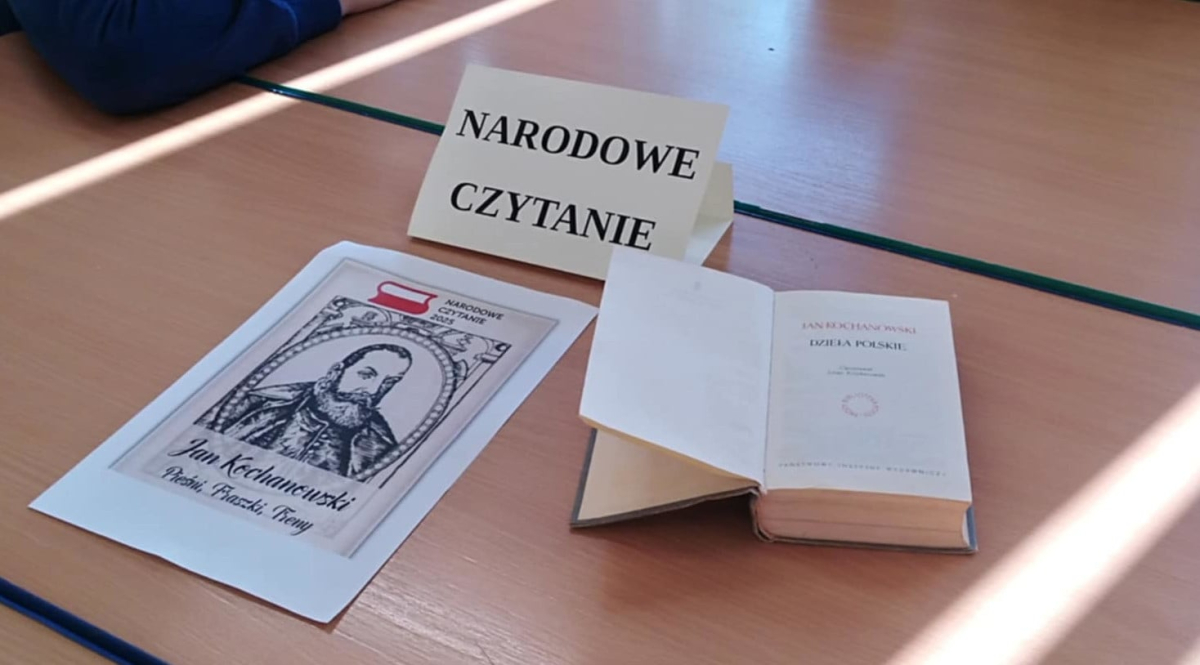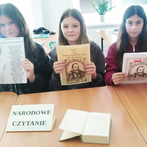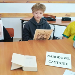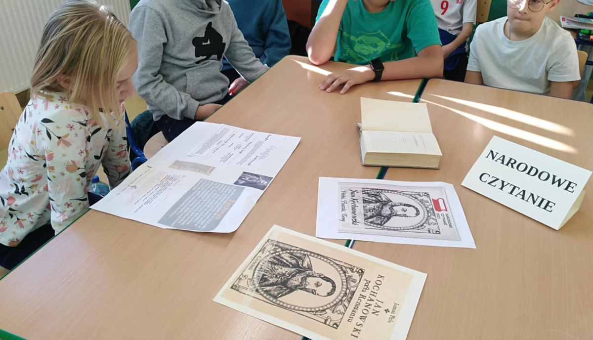 Uczniowie klasy V i VI wzięli udział w akcji Narodowego Czytania. Celem akcji jest popularyzacja czytelnictwa, wzmocnienie poczucia wspólnoty narodowej i kulturowej poprzez wspólne poznawanie kanonu polskiej literatury, promowanie znajomości polskich dzieł literackich oraz dbałość o poprawność i bogactwo polszczyzny. Lekturą tegorocznej edycji Narodowego Czytania jest twórczość Jana Kochanowskiego.