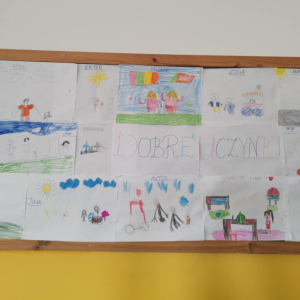Słowa ranią. Wykonanie przez kl.0 rysunków: "Dobre uczynki".
